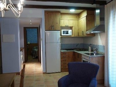 Dispone de dos habitaciones dobles, baño y cocina-comedor-sala de estar. La cocina esta totalmente equipada con horno, nevera, lavadora, plancha y microondas.